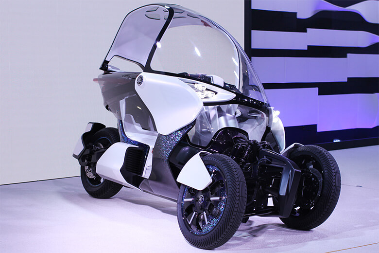 前2輪+後1輪を装備した独自のLMWテクノロジーで、高い安定性を実現したヤマハ。その進化版は、姿勢制御システムによって停止時も足を地面につく必要のない自立機能を実現している。