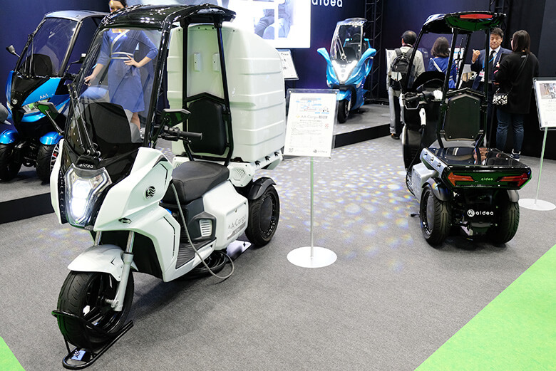 日本の新興メーカー・アイディアは、2020年早々に発売予定のAA-カーゴ V2H(左)とAA-カーゴ(右)を展示。