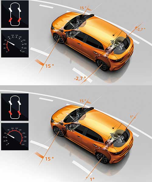 こうした前後輪の向きを操る四輪操舵を採用する車はほかにもあるが、後輪が向く角度やタイミングは、各車それぞれにノウハウがある。R.S. トロフィーの場合は、F1でも活躍するルノーが培ってきたモータースポーツ技術が活かされていることは言うまでもない。