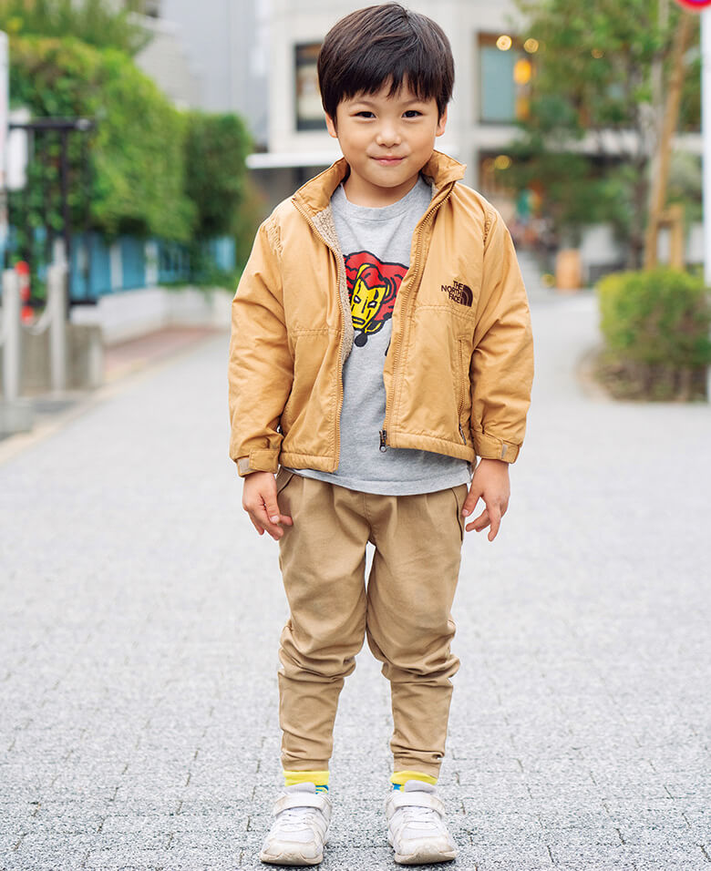 KEYWORD[アースカラー]長井太郎くん Age 5渋いカラーリングの中、アイアンマンが誇らしく覗く。未来のアースを背負うのはキミだ!