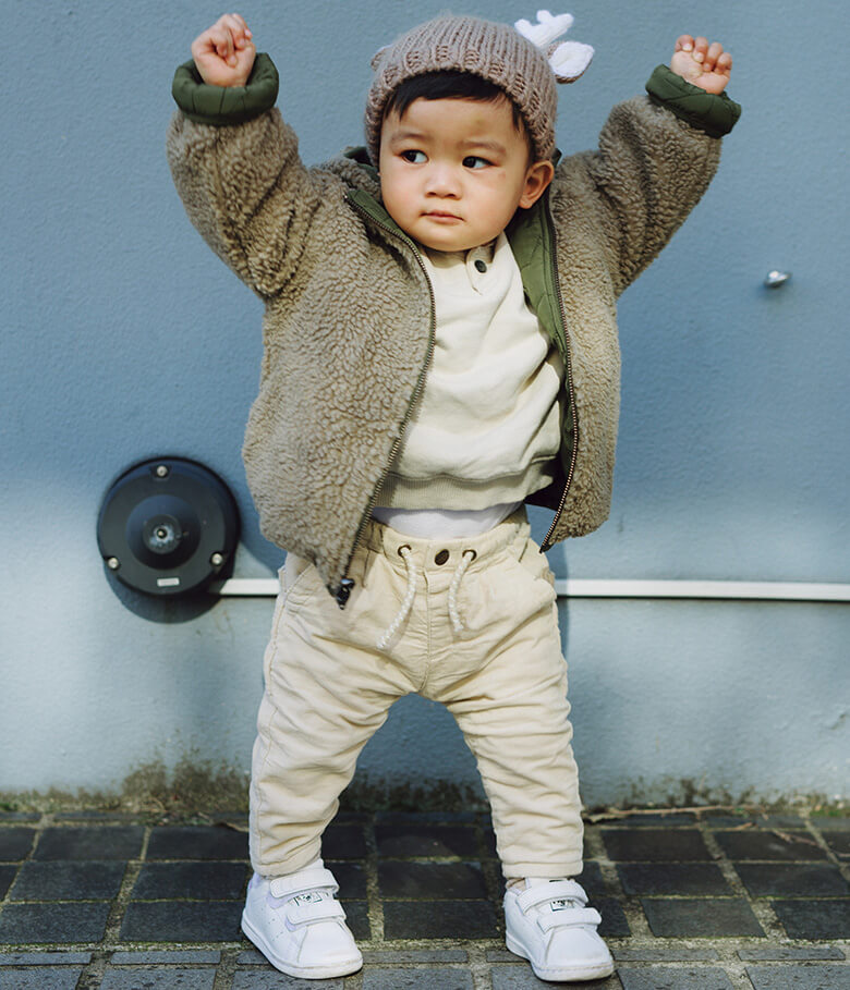 柳澤カイリくん Age 1大人が着てもカワイイのに、こんな子が着たらもう! アースカラーのグラデーションもお見事です。