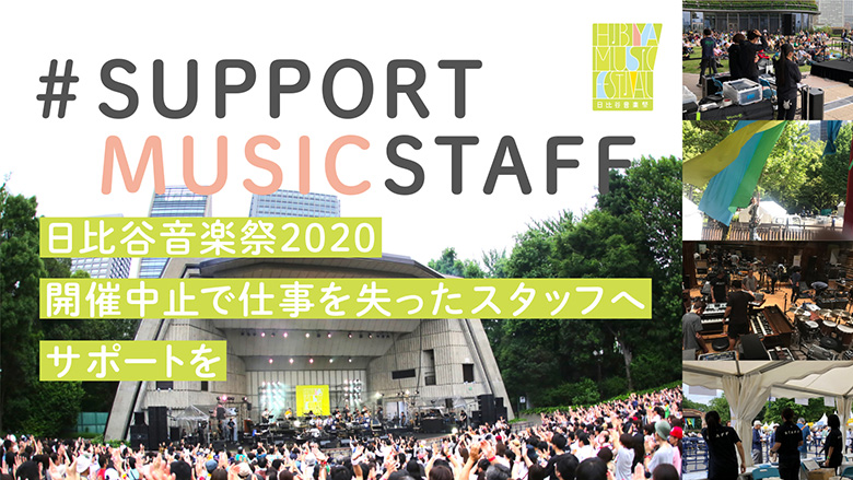 残念ながら中止となった、2020年日比谷音楽祭のロゴ。 ライブに出演するアーティストは、ステージがあって初めて輝く。そのステージは、音響、照明など裏方のスタッフが汗を流して設けられる。亀田さんは、音楽祭が再開できたときに改めてサポートしてもらうために、1年も2年も前からスケジュールをおさえていた彼らの暮らしを、今、支える責任を感じた。