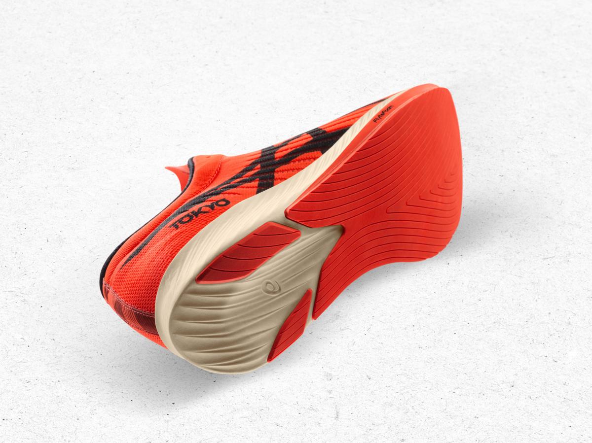 対するは極東の島国、日本を代表するアシックス。彼らが用意したのは、史上もっとも先進的なランニングシューズと言われるメタレーサーである。