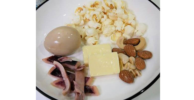 個人的にはポップコーンがおすすめ。お酒に合う(筆者撮影)手軽にできておすすめなのは、ポップコーン、ナッツ類、チーズ、かまぼこ、お刺し身、味玉など。スモークするのは数分だが、しっかり香りがつく。