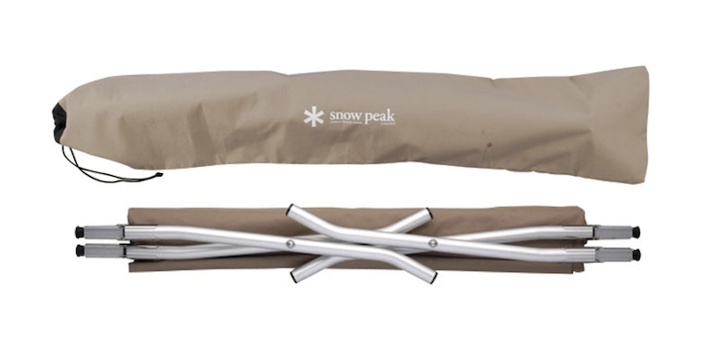 「スノーピークコット ハイテンション」3万9500円/スノーピーク 0120-010-660家でゴロゴロしているとパートナーにガミガミ言われてしまうに違いない。でも、子供を連れて公園でダラダラするならそこまでカドも立たないだろう。ただ、芝生に寝転ぶと草のチクチクや服の汚れも気になる。