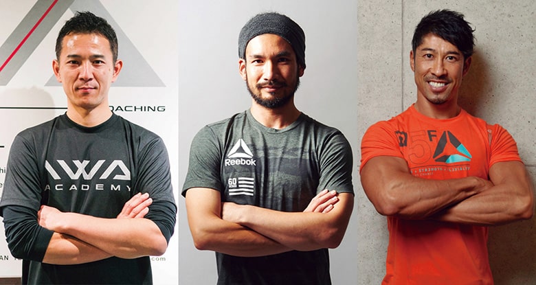 トレーニングメニューを教えてくれたのはこの人たち[左]IWAアカデミー チーフディレクター 木村匡宏さん[中]ヨガスタジオ テラス代表 AKIさん[右]ボディ ワーク スペース イヴォルヴ代表 有馬康泰さん増山直樹、菊地 亮=文