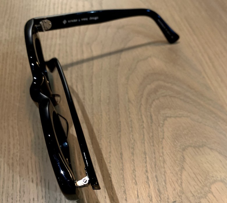 橋本さんが掛けたときのギャップに惹かれたという、タカヒロミヤシタ ザ・ソロイストのサングラス「最近はもっぱらセルフレーム」と話す橋本さん。その言葉は、今回紹介した3本を見ても納得。なかでもこれは、一見の見た目と掛けたときのギャップにやられて購入を決意した。