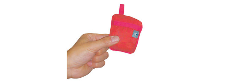 バッグはパッカブル仕様で、最終的には手のひらに乗るなんてものじゃなく、手の中にすっぽり収まってしまう小ささに変化。握り込んでしまえばその姿が見えなくなるほどで、徹底的に突き詰めるその技術力には日本のモノづくりの凄みを感じる。