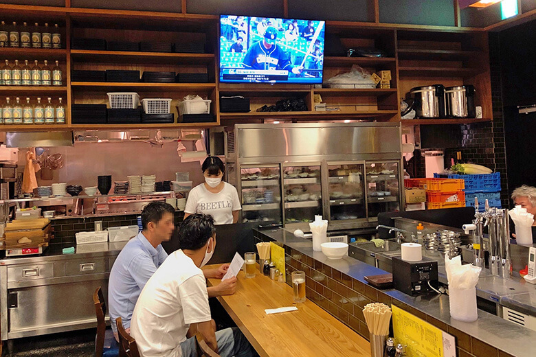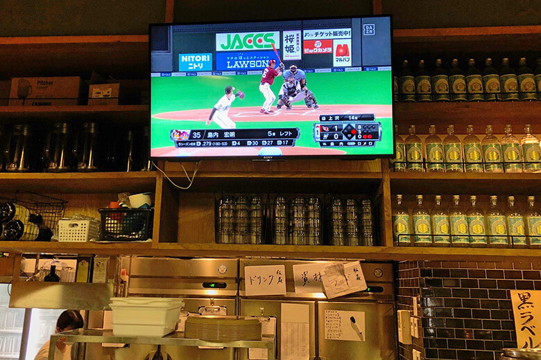 中日戦だ。ちなみに、もう1台のテレビでは巨人戦。これはすごい。スポーツバー以外でプロ野球の多角中継が観られるとは。