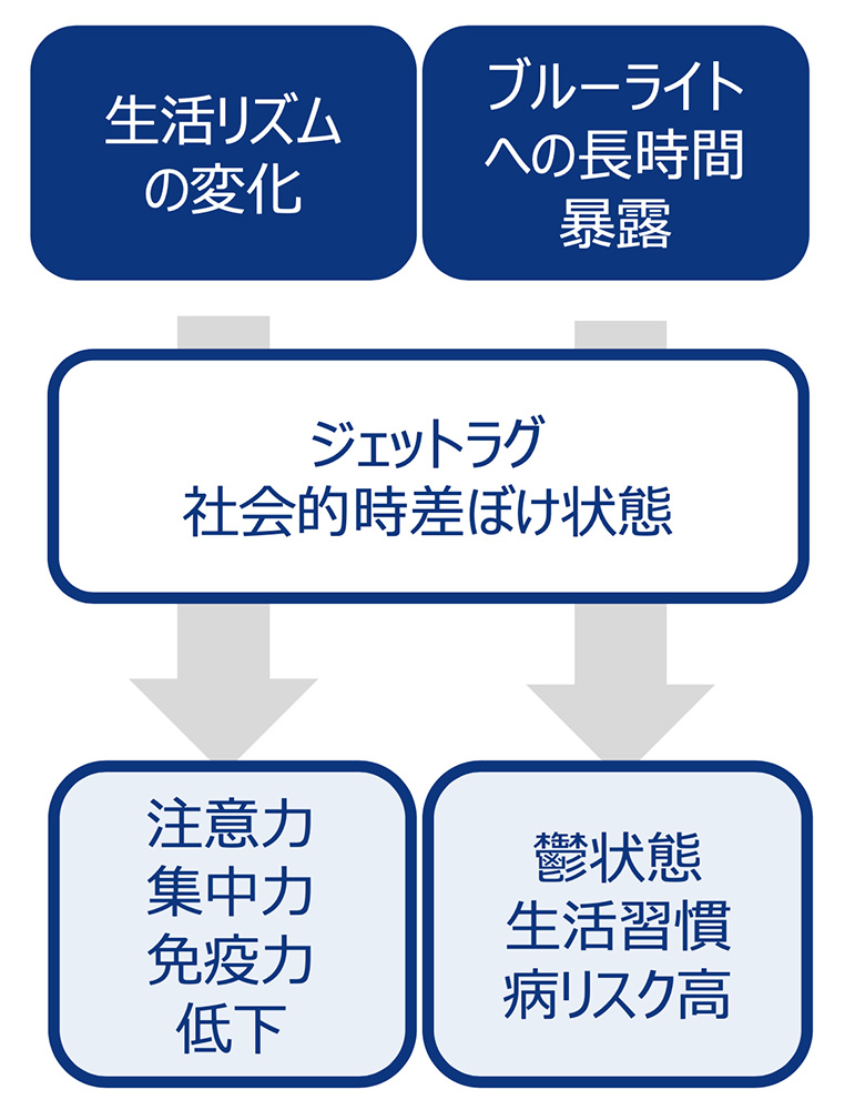 社会的時差ぼけという新たな問題も浮き彫りになった」。