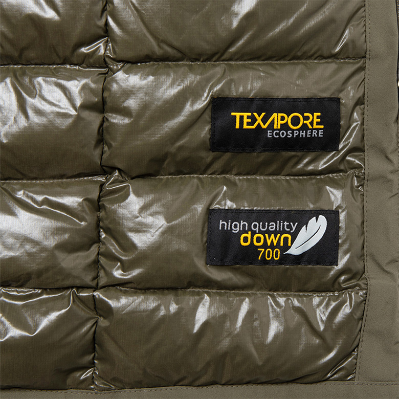 しかも、RDS基準を満たした高品質なダウンパックが仕込まれており、シェルにはブランドが誇るテキサポール・エコスフィア、裏地には防風に優れるストームロックを採用と、ブランドが培ってきたアウトドアウェアへのノウハウが注ぎ込まれているのだ。