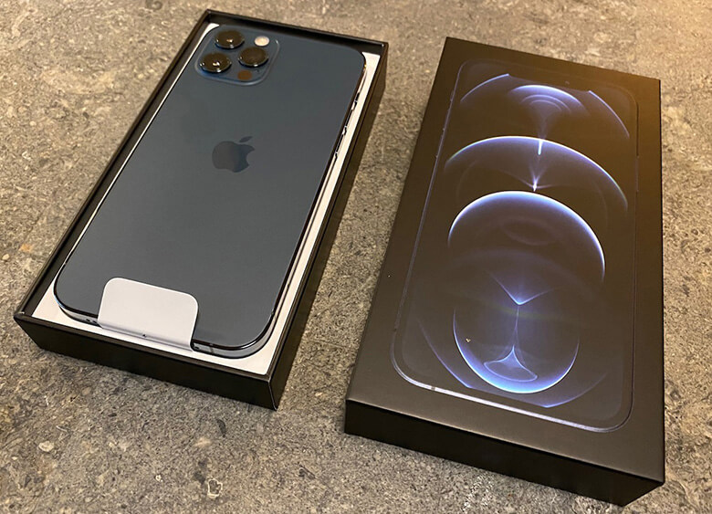 鎮座している美しいブルーの筐体に息を吞む。少しグレーがかった青色は上品極まりなく、昨年の「iPhone 11 Pro」のミッドナイトグリーンと甲乙付けがたい大人の発色だ。来年の秋まで寝食をともにする相棒に、まずはごあいさつ。こんにちは。