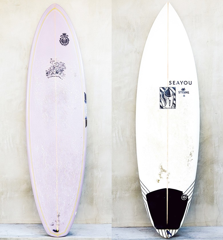 また写真のサーフボードは愛用中の2本で、いずれも豪州ブランド。「週に1度は海に行きたいんですが‥‥‥」と留学時代とは違い、今は仕事に邁進する日々を送る。
