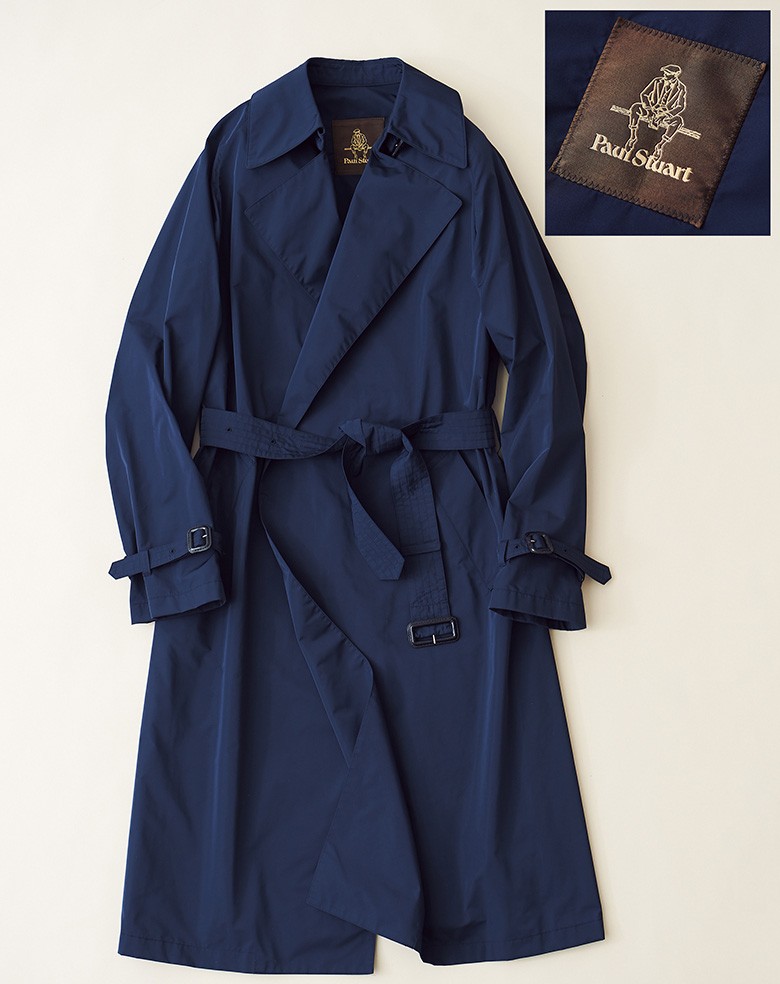 トレンチの原型であるタイロッケンコートをモチーフにした「クリフォードコート」。毎シーズン、素材を変えて展開する定番だ。こちらはシルク混のナイロンタフタ素材。タグにはブランドのシンボル「マン・オン・ザ・フェンス」があしらわれる。12万円 [2月下旬発売予定] /ポール・スチュアート(ポール・スチュアート 青山本店 03-6384-5763)2019年秋冬コレクションより、日本におけるディレクターを務めている鴨志田氏。毎シーズンの服の企画はもちろん、旗艦店のビジュアルディレクションやコレクションラインの製作など、その仕事は多岐にわたる。