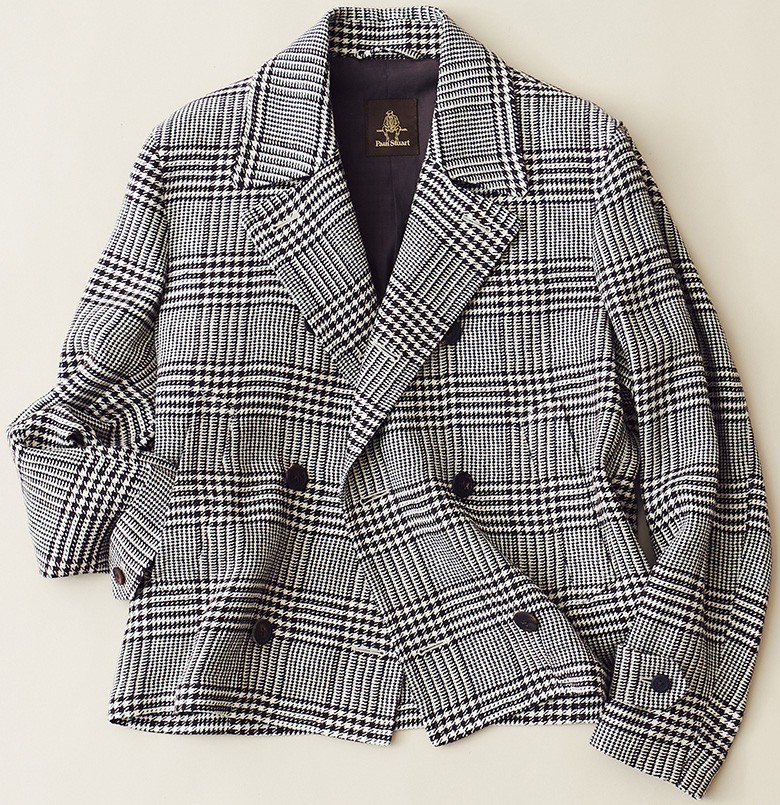 ブルゾン感覚で軽快に羽織りたい、ショート丈のピーコート。くっきりとしたグレンチェック柄、大ぶりの襟といったディテールが、大人の遊び心を感じさせる。ざっくりとした質感が気持ちいいリネン素材を採用。12万円 [2月下旬発売予定]/ポール・スチュアート(ポール・スチュアート 青山本店 03-6384-5763)さて改めて付記しておくが、ポール・スチュアートの創業は1938年。アメリカのブランドとして客観的に捉えれば間違いなく老舗である。しかしながらいわゆるアメリカントラッドとは一線を画す、独特な色気が漂っている。