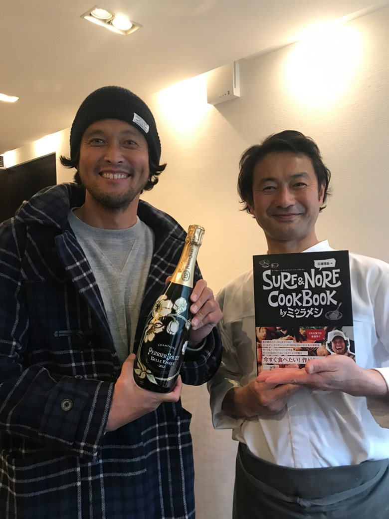 「ここで本多さんの料理を食べたことはもちろんあるけど、僕の料理を食べてもらったことももちろんないし……」と、やや緊張の面持ちで『SURF & NORF COOKBOOK by ミウラメシ』を手渡すと、「おっ、ありがとうございます! これで勉強させてもらいます!」と本多さん。