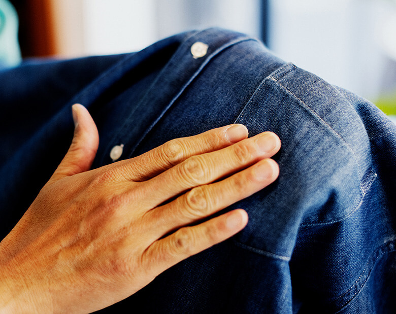 ノーダメージにすることでクリーンな印象のシャツに仕立てています。