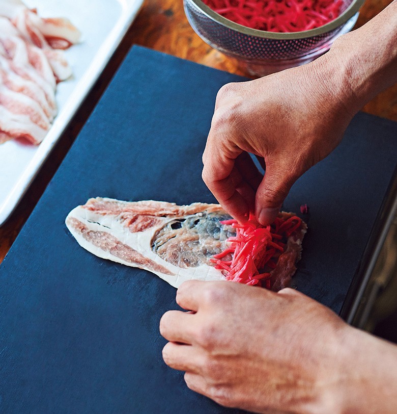 肉の幅広いほうを手前にして紅しょうがを巻こう!◆3