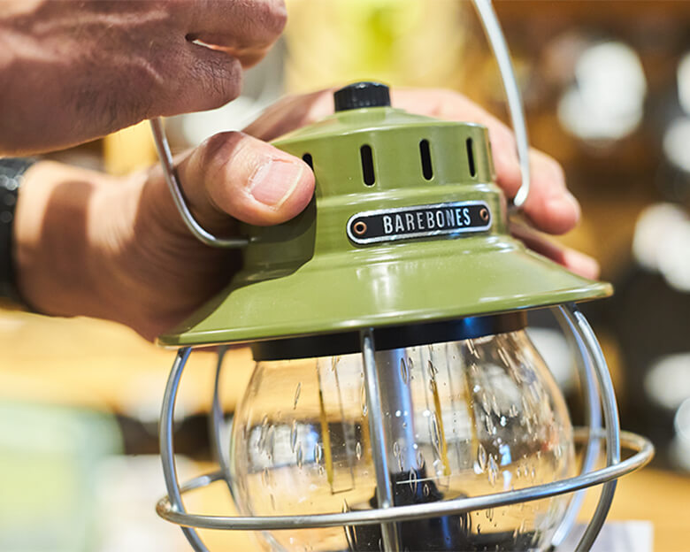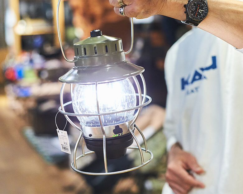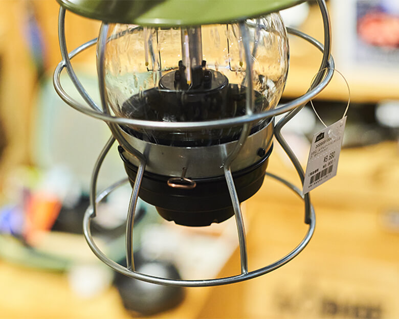 「レイルロードランタン」9680円/ベアボーンズ(エイアンドエフ カントリー本店 03-3209-0750)――このランタン、かわいいですね!平戸 レイルロードランタンといいます。その名の通り、アメリカの駅舎などで使われていたランタンをベースにデザインされています。