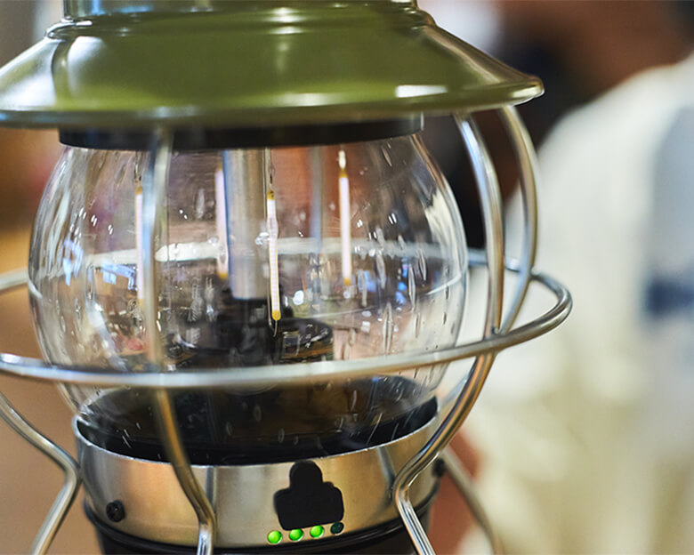 ――結構、明るいですね!平戸 調光もできます。いちばん明るくすると3~4時間ぐらい、暗めにすると100時間ぐらいはもつと思います。