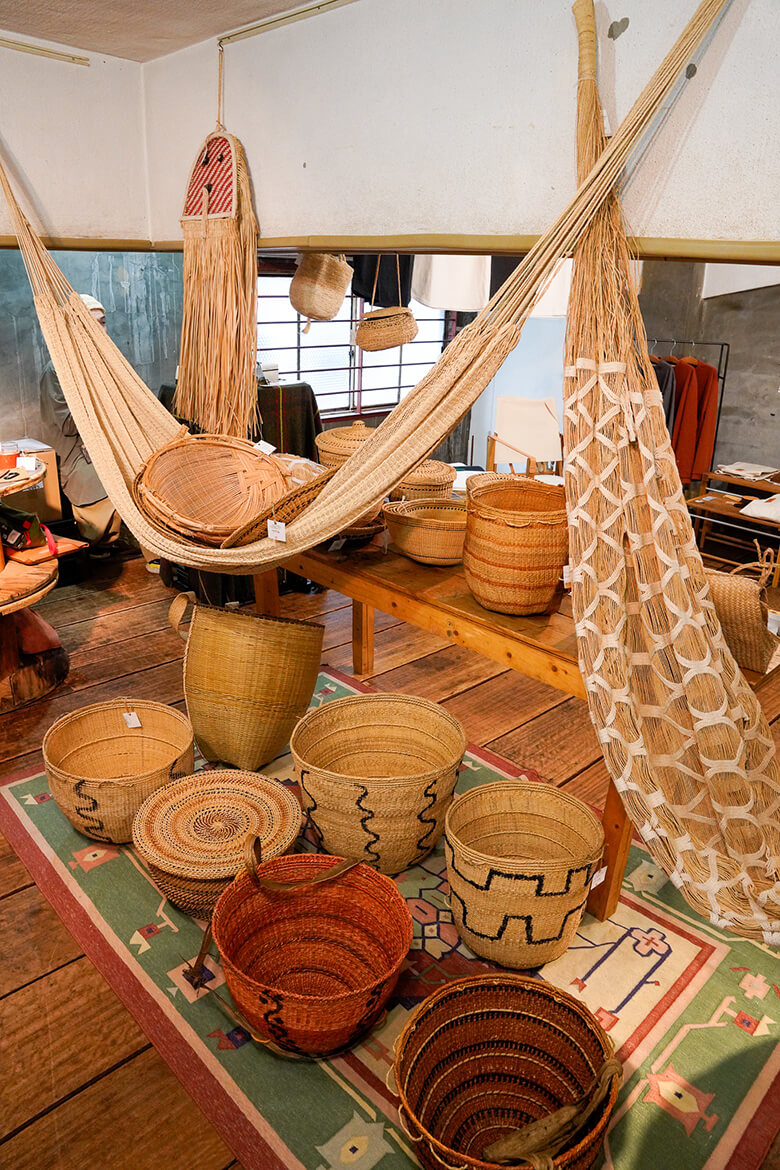 インコウサのプロダクト。その脇には、南米の先住民が作った工芸品やお香などをラインナップするアメリカのブランド「インコウサ」が鎮座。パーヴェイヤーズが独自に取り扱っているもので、クラフト感ある味わいが魅力だ。