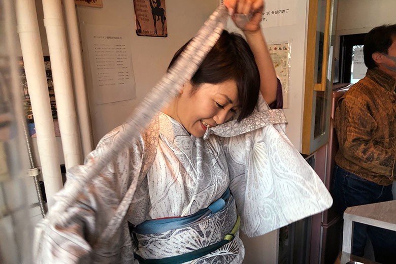 「着物にハマったのは、このお店がきっかけなんです。浴衣でお店に立ったときに皆さんが面白がってくださって。浴衣のシーズンが過ぎたときに、じゃあ着物を着ようということで」。