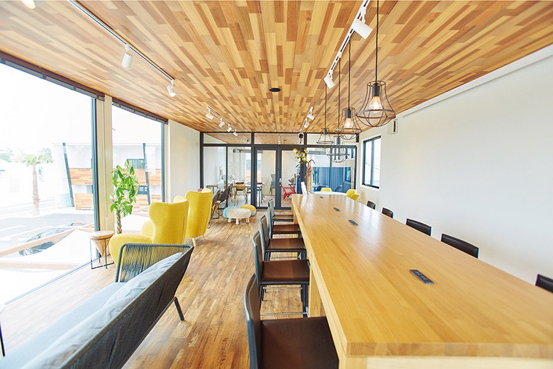 快適なWi-Fi環境のあるコワーキングスペースは2階にあり、仕事の合間のサーフィンも、その逆も可能となる。