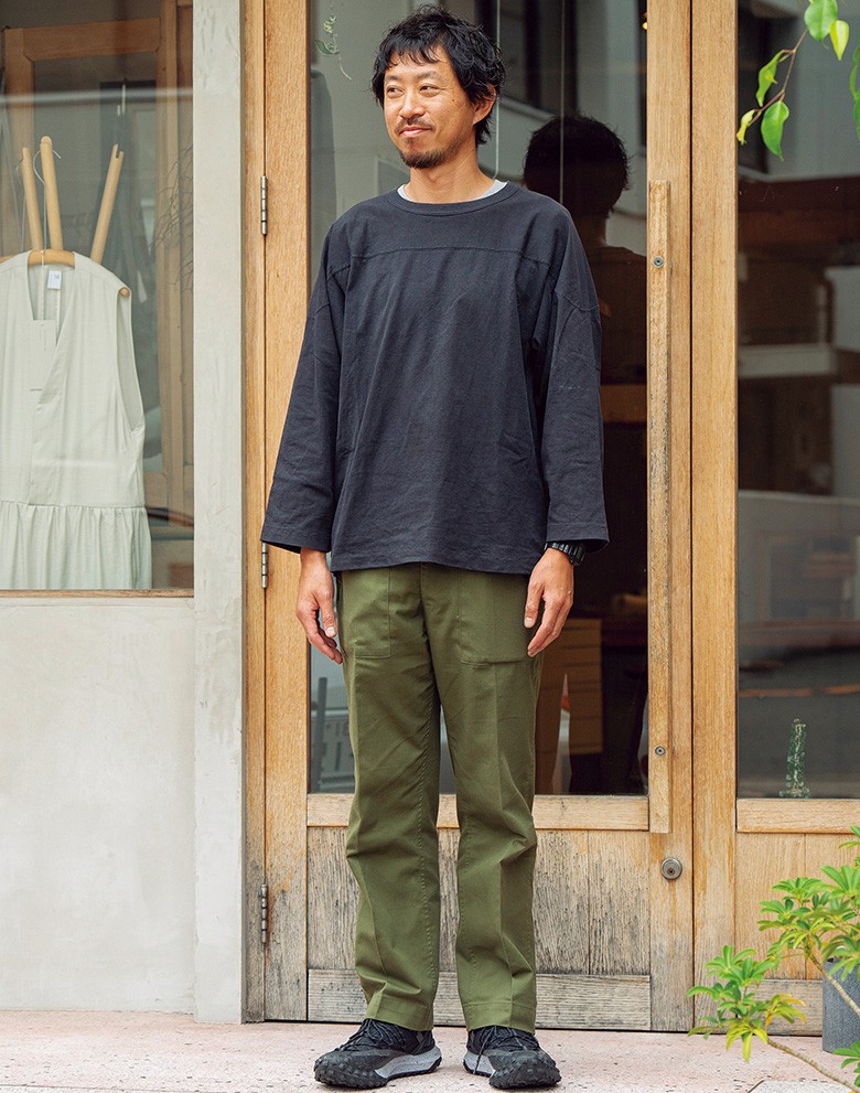 Tシャツ/コモリ山口 浩さん Age 42七分袖のこの腕元で浮く感じが、彼の抜け感の秘密かも。主張控えめなダークトーンもよくお似合いで。