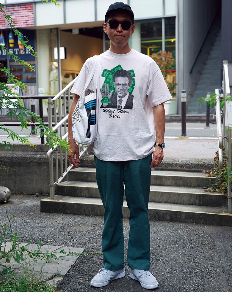 Tシャツ/古着高橋 龍さん Age 42ヴィンテージTに合わせた、ホワイト&グリーンの色合わせ。プリントの楽しみ方のひとつの解ですね。