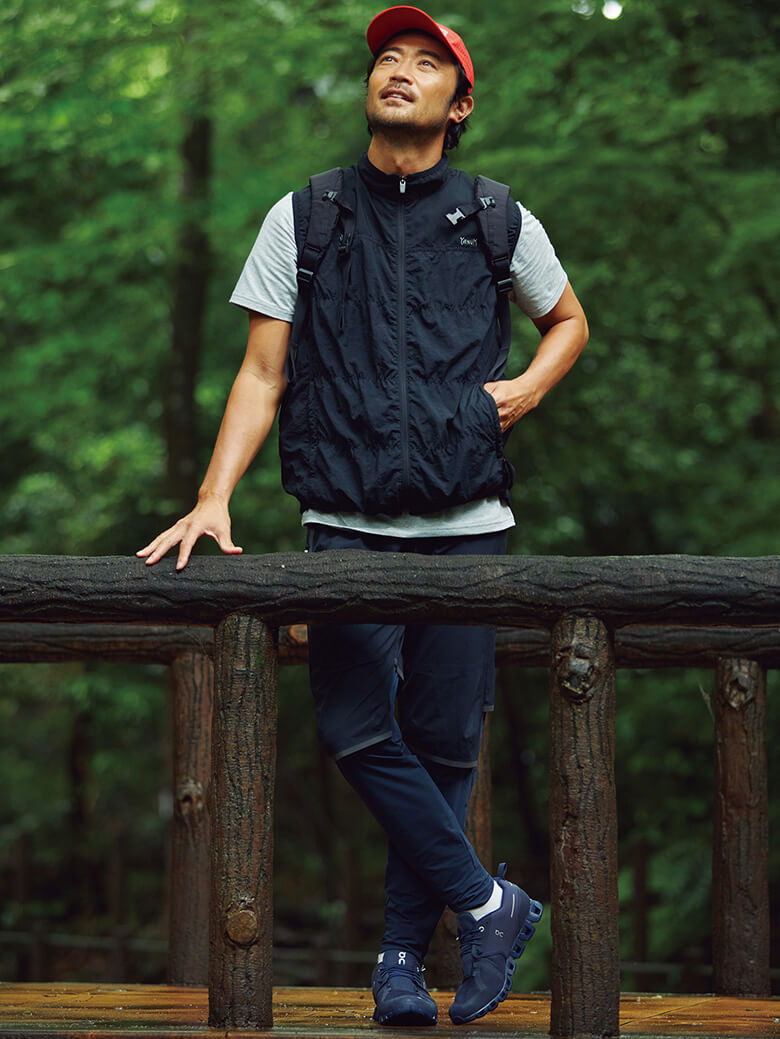 スニーカー1万7380円、Tシャツ6600円、パンツ2万5300円、キャップ4400円/すべてオン(オン ジャパン 050-3196-4189)、ベスト4万6200円/ヤヌーク(カイタック インターナショナル 03-5722-3684)、その他私物登山を終えていざ帰路に。帰りのバスの待ち時間を使った散策も格別だとか。そのときにこのスニーカーが活躍する。