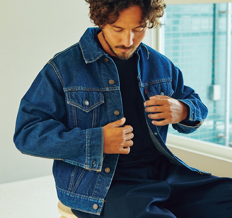 Gジャンといえば通年で活躍するアウターというイメージだけど、意外にコレだけで心地よく過ごせる季節は限られる。だからこそ秋は、ダークトーンのシンプルなインナーと合わせて着こなしの主役に据えてみてはいかが?