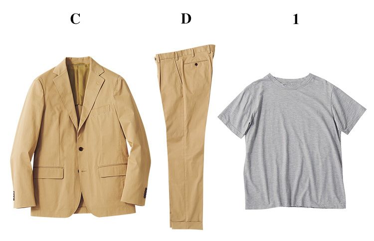腕時計8300円/タイメックス(DKSHジャパン 03-5441-4515)、胸元に掛けたメガネ3万円/アヤメ 03-6455-1103、靴8万円/クロケット&ジョーンズ(ビームス ハウス 丸の内 03-5220-8686)、バッグ2万5000円/グレゴリー(グレゴリー/サムソナイト・ジャパン 0800-123-6910)彼が勤務する亞藤忠物産では、カジュアルフライデーをいち早く導入。カジュアルとはいえ、節度のある服装での出勤が求められる。ユースケの方程式はベージュのセットアップ。普段はシャツとタイを合わせるが、社外の人間に合う予定がない日はTシャツをイン。金曜日は部下を誘って夕方から飲むのが恒例行事だ。