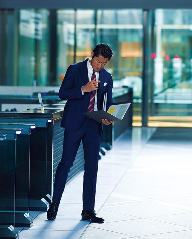 シャツ2万5900円/エリコ フォルミコラ(シップス 渋谷店 03-3496-0481)、靴23万円/ジョンロブ(ジョン ロブ ジャパン 03-6267-6010)、タイ1万7000円/ニッキー(ストラスブルゴ 0120-383-563)、チーフ4000円/フェアファクス(フェアファクスコレクティブ 03-3497-1281)