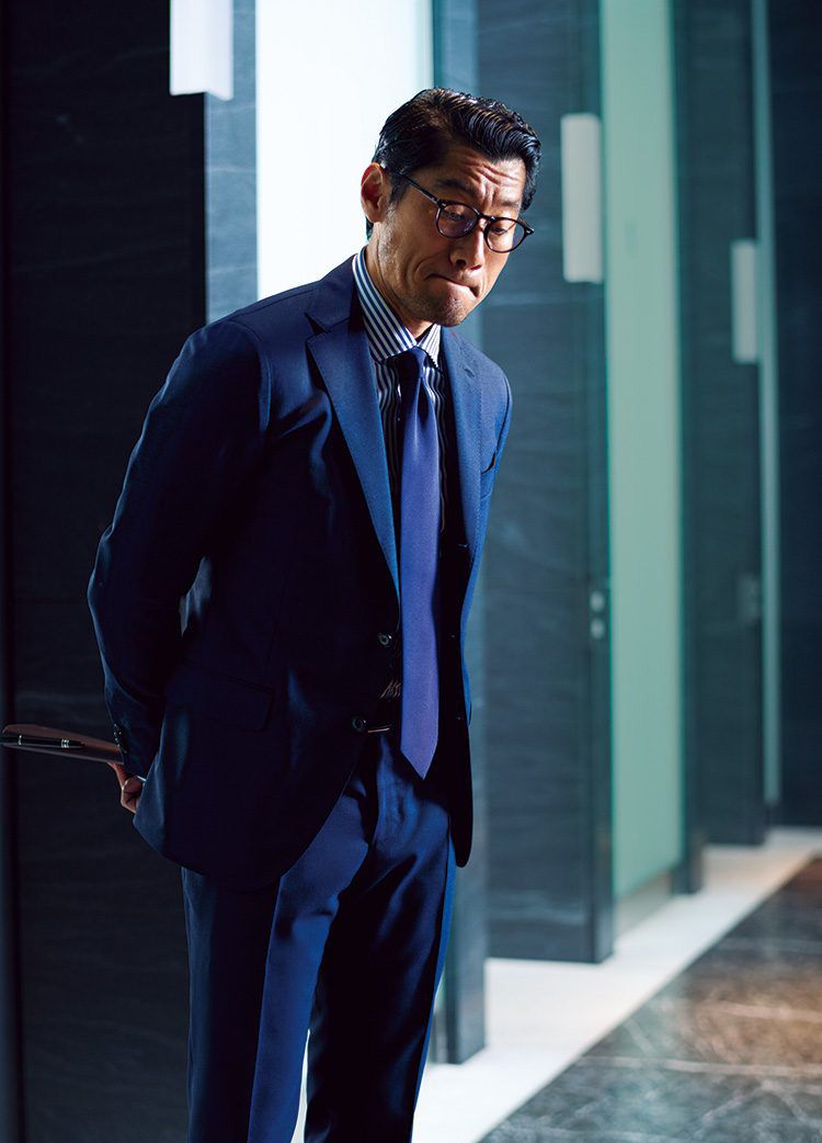 シャツ2万9000円/バルバ(ストラスブルゴ 0120-383-563)、タイ1万4700円/ブリューワー(シップス 渋谷店 03-3496-0481)、メガネ3万円/アヤメ 03-6455-1103