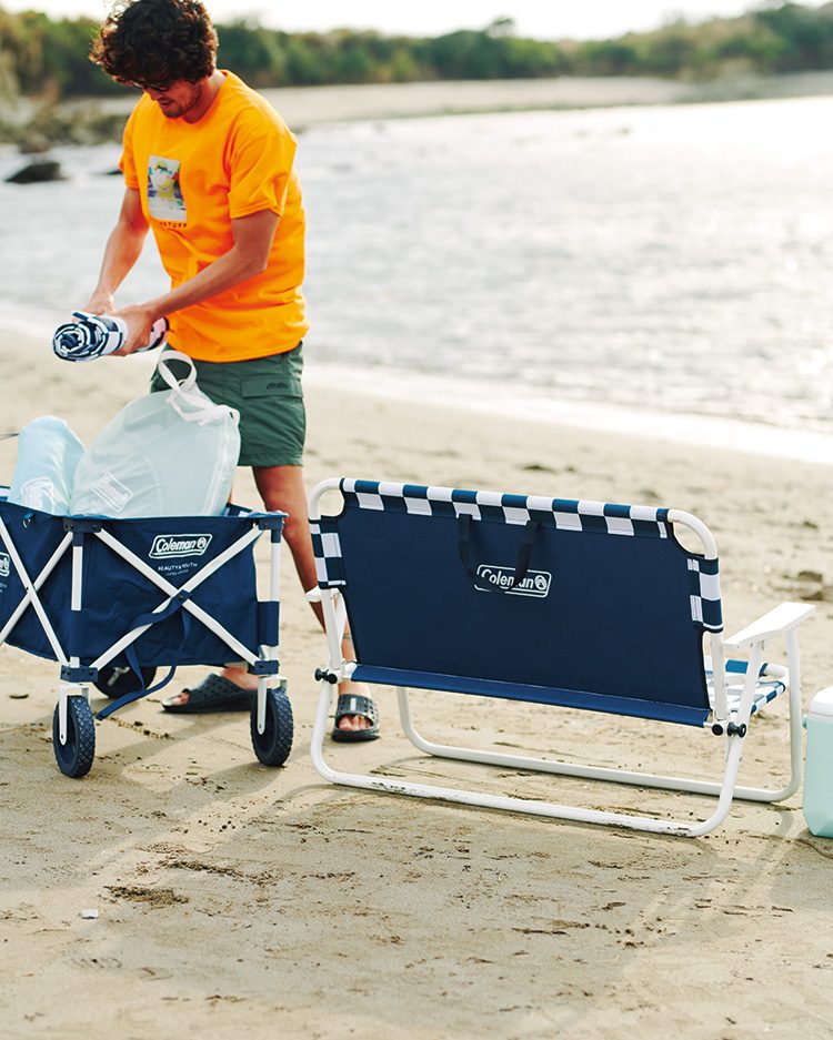 ベンチ9200円、ワゴン1万5500円[ともに6月発売予定。ビューティ&ユース取り扱い店舗及びオンラインストアにて先行受注を実施中]/コールマン×ビューティ&ユース、Tシャツ5800円/フラグスタッフ、ショーツ1万4800円/モーシャン×ビューティ&ユース、サンダル8000円/ホカ オネオネ(すべてビューティ&ユース ユナイテッドアローズ 渋谷公園通り店 03-5428-1893)今すぐここを完全パラダイス計画。