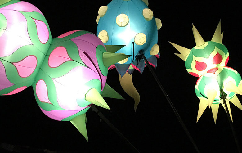 そして、そこが夜になると一変。あちこちに配置された1300個のオブジェが光り始め、大小1581台ものライトが空間を照らし上げる。