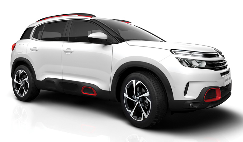 シトロエンの「C5 エアクロス SUV」。心臓部は2Lディーゼルのみで、最大トルクは400Nm! その力強いトルクで前脚を駆ける。価格は424万円〜。今なお信者の多い、驚異的な足捌きを持つ独創的な油圧機構ハイドロ・ニューマティック(古くは1955年のシトロエンDSに採用)の特徴を受け継ぎ、「ゆるふわな乗り心地」を現代に実現。