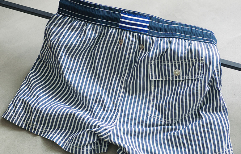 「ニースのオジサンみたいにはけると格好いい」阿久津さんにとって、魅力的な服の基準のひとつが専門性。「例えば、特定のシーンで使うものなのに、普段の街中でも魅力的に映るものがすごく好きなんです」。夏で言えば、水辺のためのスイムショーツもそのひとつで、挙げてくれたのはフランス発の専業ブランドのもの。かなり短い丈がポイントだ。