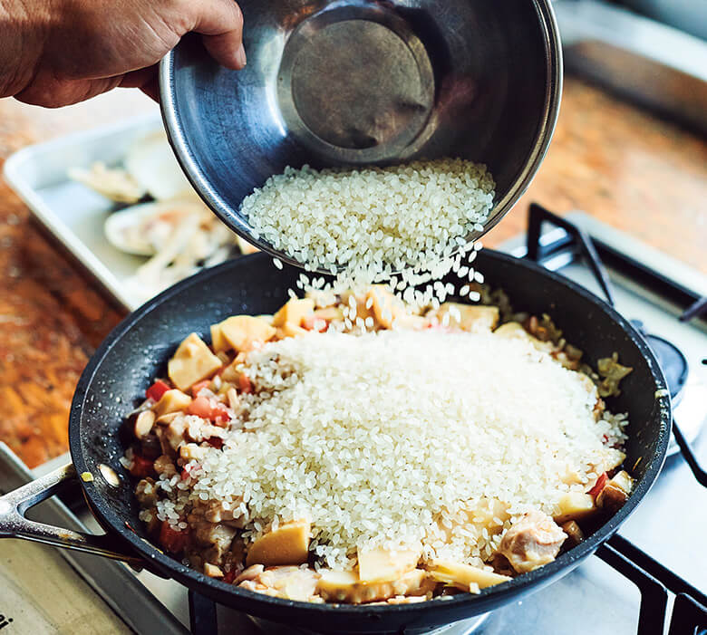 米は洗わずそのまま投入するので気をつけてくださいね!米が透明になったら、1のはまぐりの茹で汁(出汁)、醤油を入れて軽く混ぜ合わせ、はまぐりを並べ入れて蓋をする。
