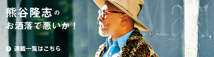 熊谷隆志(くまがいたかし)1970年生まれ。渡仏後、 ’94年スタイリストとして活動開始。’98年以降はフォトグラファーとしても活躍。同時にクリエイティブ・ディレクターとして自身のブランド、ネサーンス、ウィンダンシーを手掛けるほか、さまざまなブランドやショップのディレクションにも携わる。ファッション、クラフト以外に飲食の分野にも進出し、カフェ・カンパニーのクリエイティブ・ディレクターも務める。趣味はサーフィン。グリーンライフにも造詣が深い。