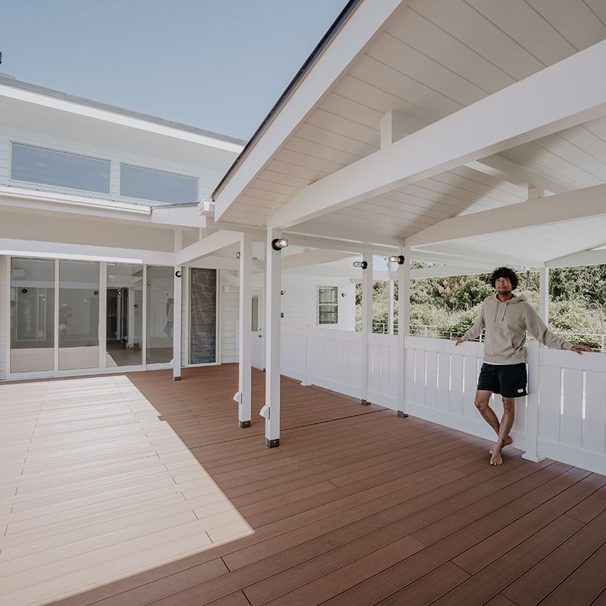 見たこともないような広大なウッドデッキ。いったい何人でバーベキューができるんだ⁉︎(@CUSTOM)