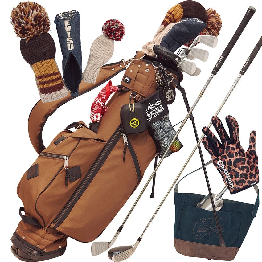 キャディバッグは個人的に落ち着いた色が好み。でもちょっと地味なので、ハンドルにバンダナを巻いたりボールケースをぶら下げたり、アクセントを加えています」。