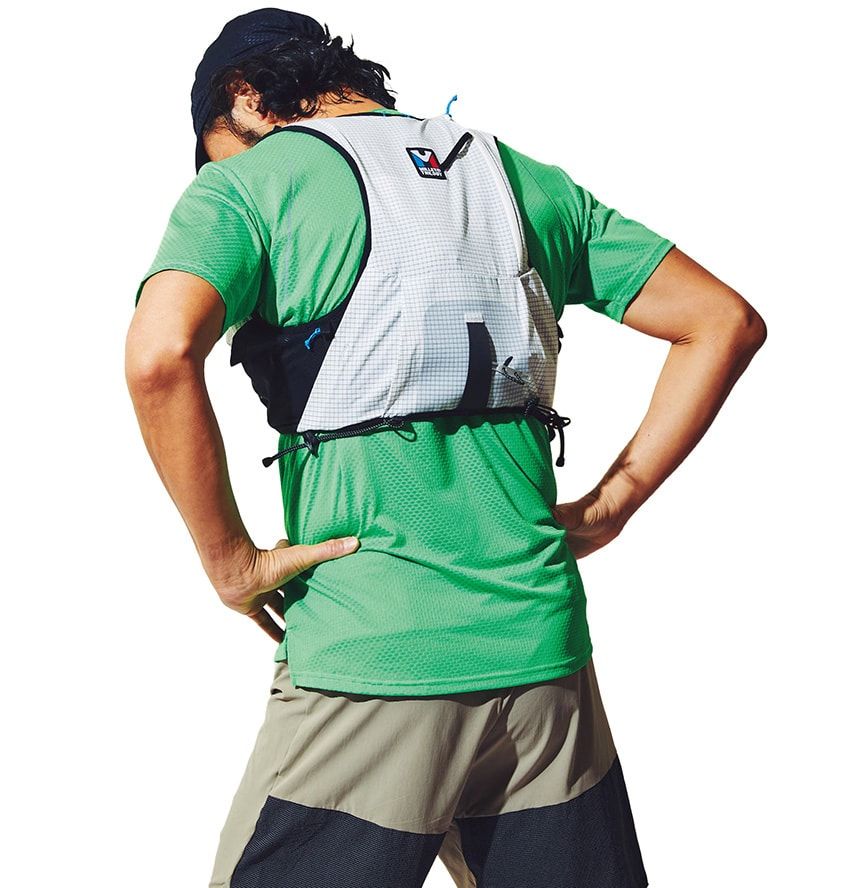 Tシャツ5940円、ショーツ1万9800円、ベスト3万2890円、キャップ3630円 /すべてミレー(ミレー・マウンテン・グループ・ジャパン 050-3198-9161)