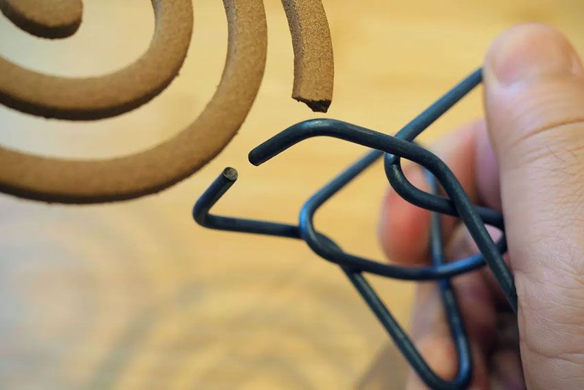 また、途中で折れてしまった蚊取り線香を無駄なく使い切れるのも嬉しいところ。短時間だけ蚊取り線香を使いたい時は、必要な長さに折って使うこともできる。挟んだところで自動的に火が消えるので、巻きの途中の適度なところを挟んでタイマーのように消火する方法も可能だ。
