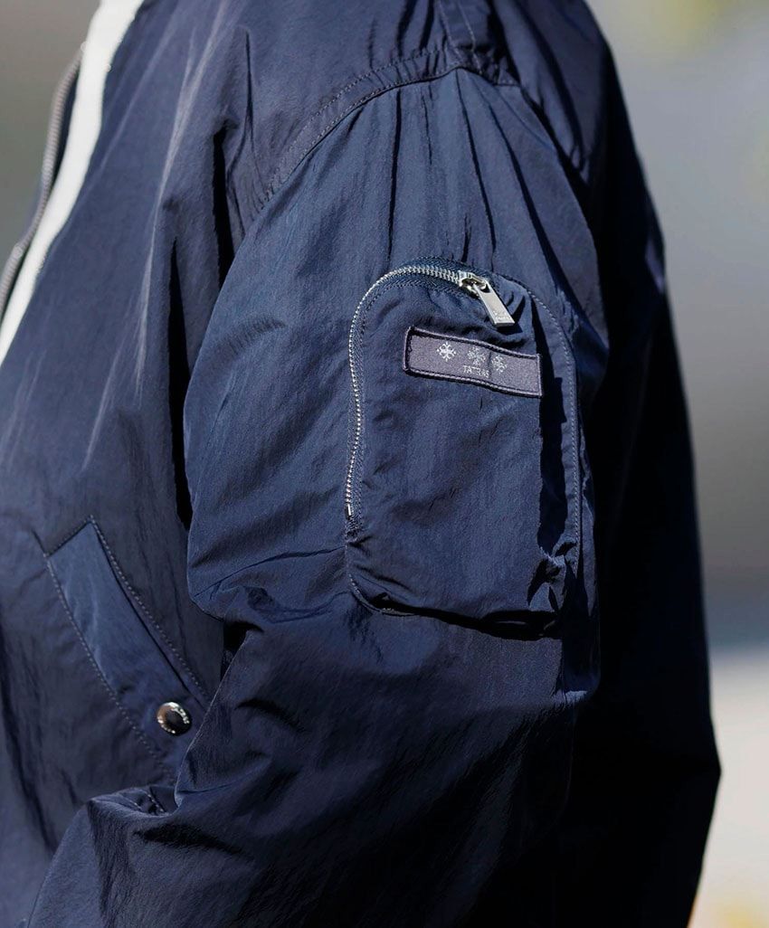 ヴィンテージのMA-1を想起させるオーバーサイズシルエットのブルゾン「トモリ」。裾リブも緩めの設定のため、ボリュームのあるスウェットやニットなどにも余裕を持って合わせられる。