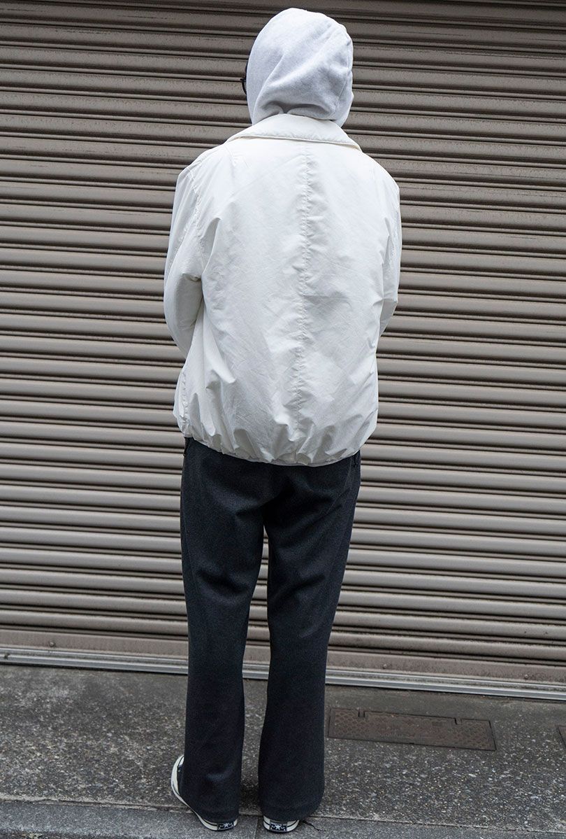 ▶︎篠原さんのスナップをすべて見る篠原 涼さん(35歳)ホワイト、グレー、黒。モノクロを巧みに使い分け、シルエットはユルっとまとめる。シュッとして、清潔感バッチリ。フードと重ねたパーカのかぶり方もウマい。