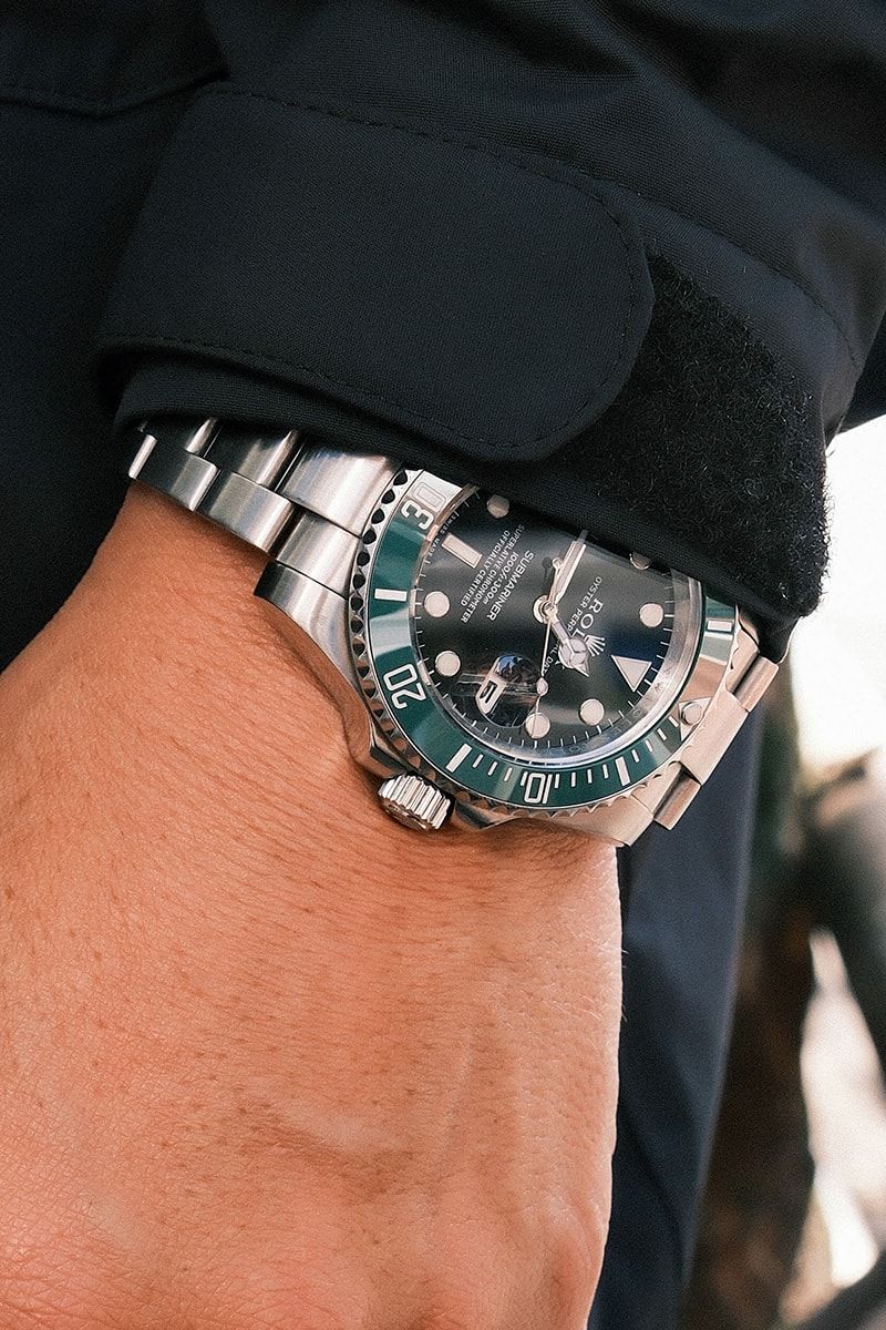 ジャケット=ザ・ノース・フェイス シャツ=無印良品 パンツ=ユニクロ 腕時計=ロレックス