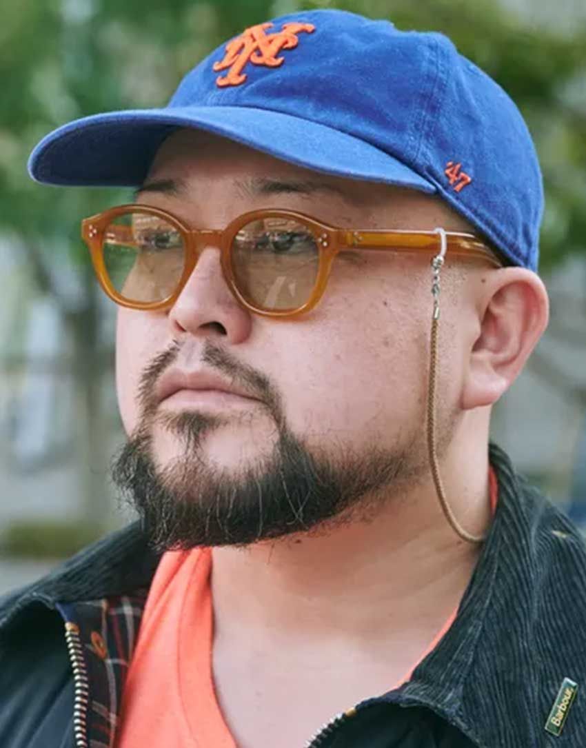 今春のトレンドアイテムでもあるバブアーのジャケットに、ビタミンカラーのTシャツをON。実はこれ、単純に春っぽいカラーを取り入れただけでなく、キャップのロゴともリンクしている。