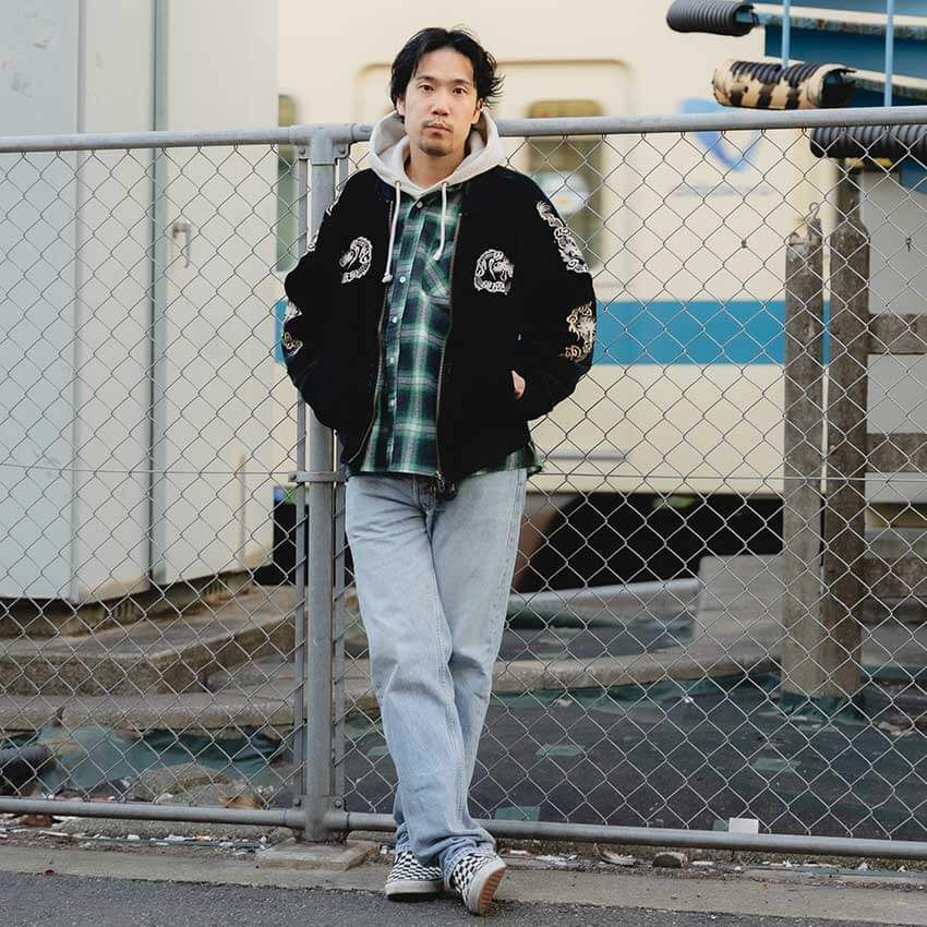 「決め手は、太さと淡い色み。兄から譲り受けた3本は同じ501でもどちらかというと細身からジャストに近いストレートだったので、ゆったりめなデニムがほしくなったんです。HIPHOPな人たちのように、コーチジャケットにニューエラをかぶって、ダボダボのデニムをはいてっていうのもカッコ良いなと」。
