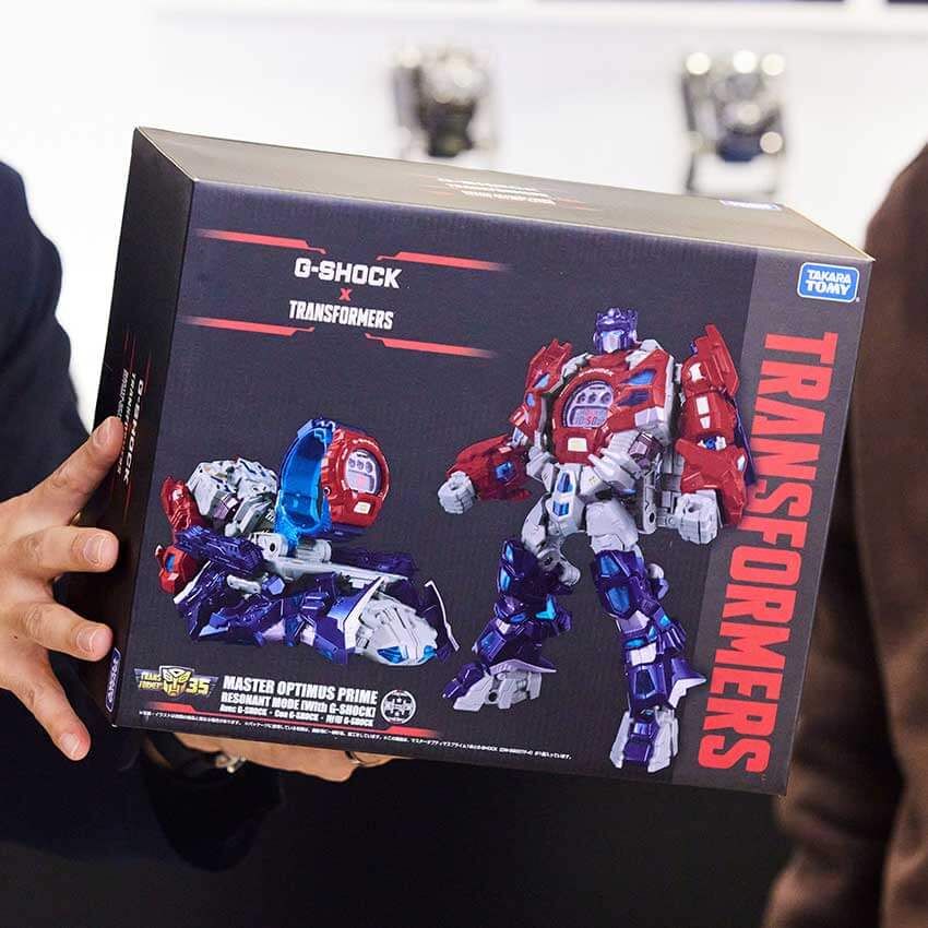 ロボットはGショックのために考案されたオリジナルデザイン。フィギュアが変形し、時計の台座として使えたり、胸部に時計をはめ込んだりできます。